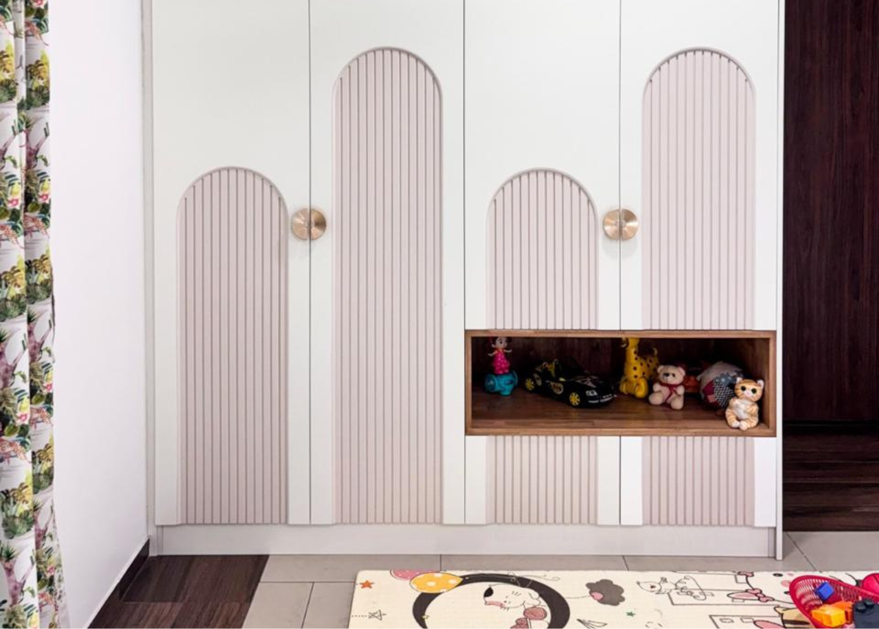 Happy Interiors designs wardrobes that not only enhance the beauty of your bedroom but also promote an organized lifestyle. Our wardrobes feature well-planned internal sections, including drawers, shelves, and hanging spaces, tailored to your storage needs. We focus on maximizing space and accessibility, ensuring that your wardrobe is both stylish and practical. With Happy Interiors, staying organized becomes effortless and enjoyable.
